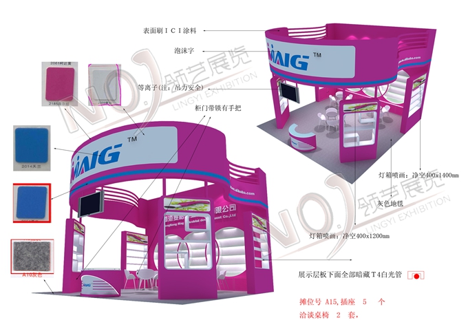 巧妙的運用紫色作主色調(diào),著重突出品牌和產(chǎn)品的展示,使整個展位浪漫優(yōu)雅又卓越氣派。