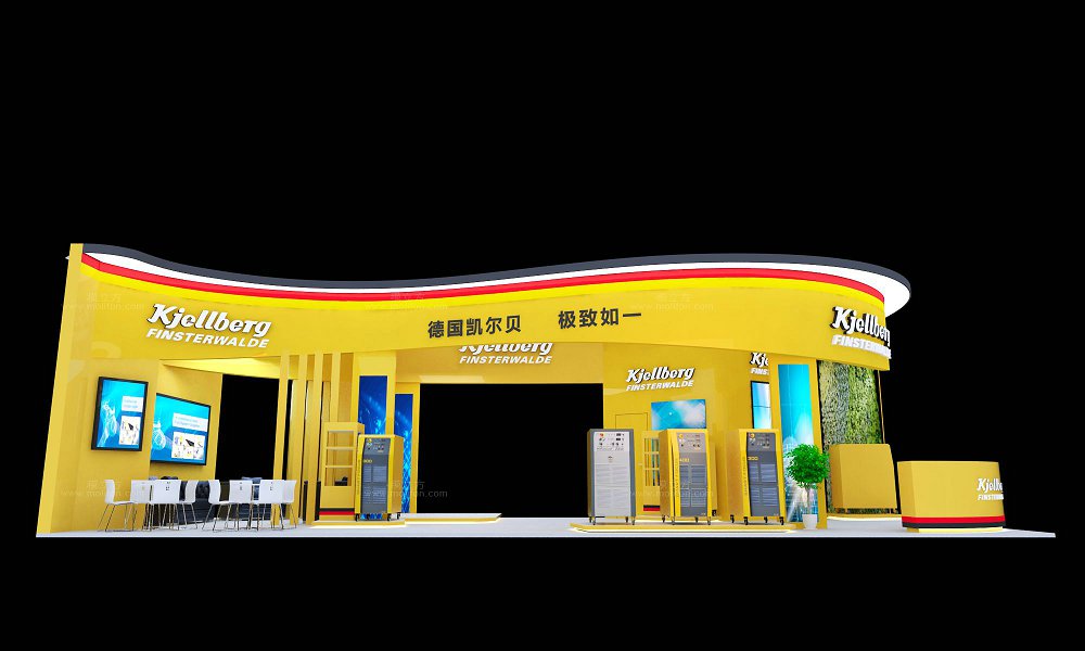 契合德國凱爾貝的品牌形象和產品特性,采用弧形結構,再搭配燈具燈光的效果,襯托出展位大氣、豪華的氛圍,突出一種簡約、時尚的品味。
