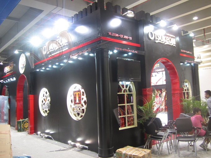 巧妙的運用紅色、黑色作搭配,著重突出品牌和產(chǎn)品的展示,使整個展位時尚新穎。