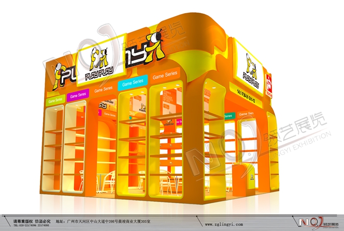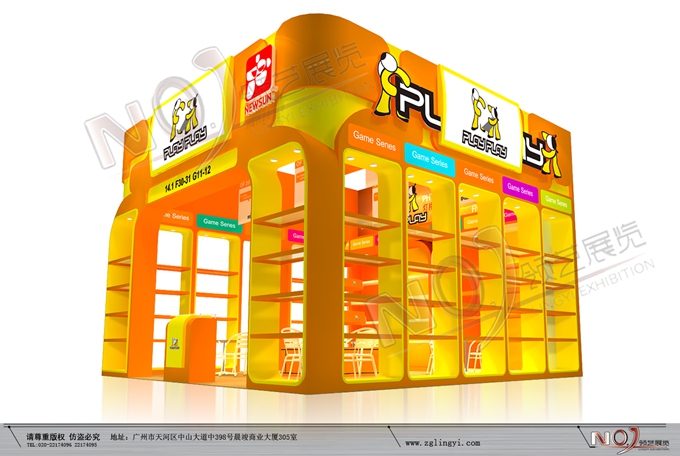 巧妙的運(yùn)用橙色、黃色作搭配,著重突出品牌和產(chǎn)品的展示,使整個(gè)展位大氣又明快。