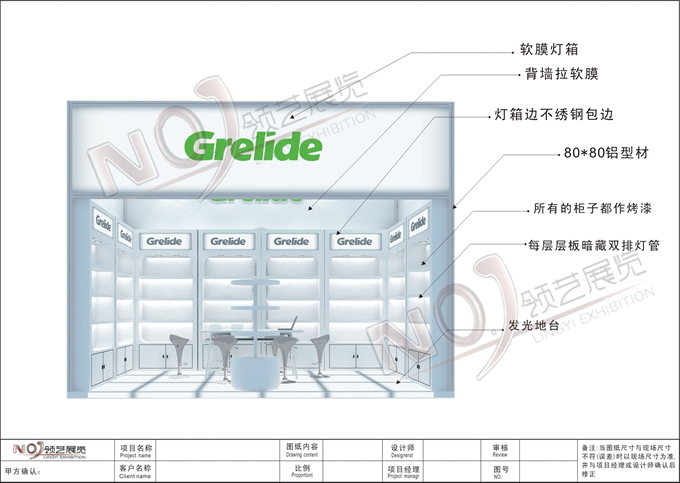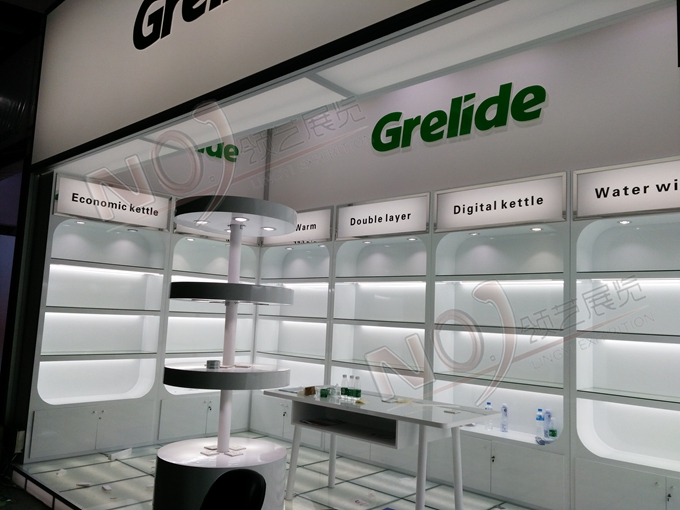 契合格來(lái)德的品牌形象和產(chǎn)品特性,采用框型結(jié)構(gòu),再搭配燈具燈光的效果,襯托出展位自由、簡(jiǎn)約的氛圍,突出一種現(xiàn)代、舒適的時(shí)尚品味。