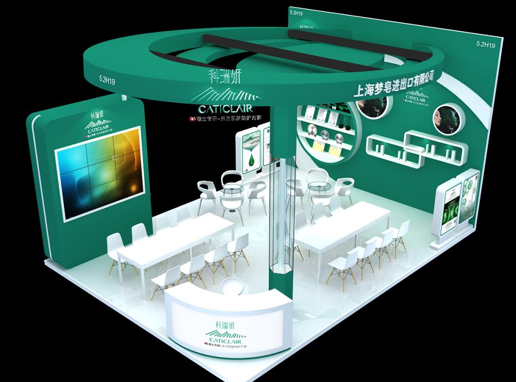 巧妙的運(yùn)用綠色,突出品牌和產(chǎn)品的展示,使整個(gè)展位高檔大氣
