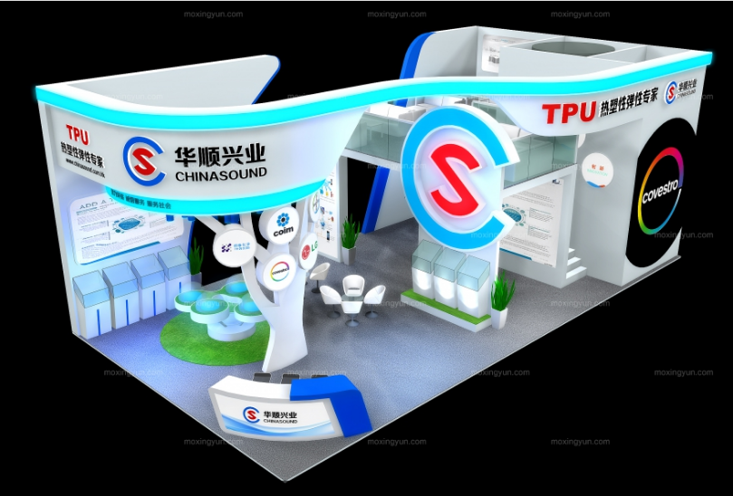 契合華順興業(yè)的品牌形象和產(chǎn)品特性,采用曲線、框型結(jié)構(gòu),再搭配燈具燈光的效果,襯托出展位簡約、融合的氛圍,突出一種高端、舒適的時(shí)尚品味。