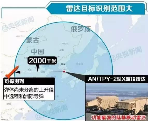 薩德的全稱是“末段高空區(qū)域防御系統(tǒng)”,是世界上最先進的導彈防御系統(tǒng)之一。雷達探測距離最遠可達2000公里,偵查范圍就包括了中國東北大部分地區(qū)和俄羅斯遠東地區(qū)。薩德能進行多重攔截,弱化中俄導彈打擊能力。