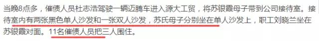 事情起因是這樣的,蘇銀霞開辦的公司資金周轉(zhuǎn)遇困,不得已向吳學(xué)占借款共計(jì)135萬元,約定月利息10%(遠(yuǎn)超法律規(guī)定的36%年利息上限)。在蘇銀霞共還款184萬元,并將一套140平米價(jià)值70萬的房子抵債后,“還剩最后17萬欠款,公司實(shí)在還不起了”。結(jié)果,就遭到涉黑勢力的恐怖逼債。