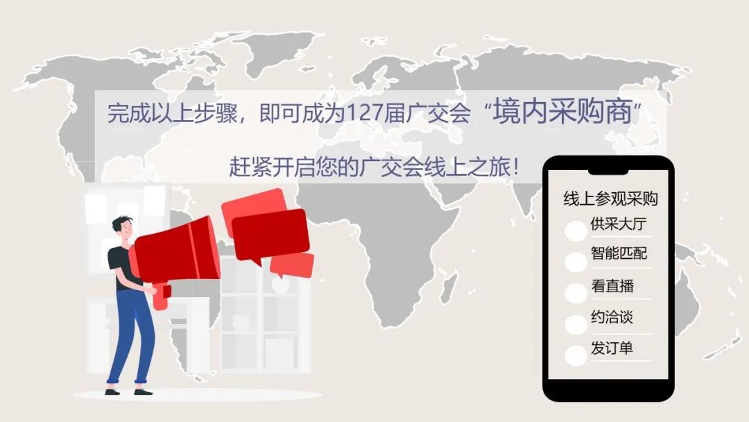 在此,誠(chéng)邀廣大“境內(nèi)采購(gòu)企業(yè)”參加第127屆廣交會(huì),體驗(yàn)中國(guó)歷史最悠久的貿(mào)易盛會(huì)與強(qiáng)大互聯(lián)網(wǎng)技術(shù)的創(chuàng)新融合,共享全球商機(jī),實(shí)現(xiàn)貿(mào)易高效對(duì)接。
