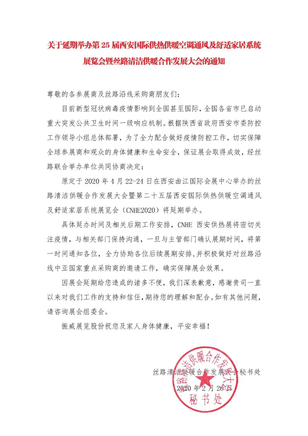 根據(jù)供熱展設(shè)計搭建公司領(lǐng)藝展覽了解到,因受近期疫情影響,第二十五屆西安供熱展將延期舉行,具體時間將另行通知,如需供熱展設(shè)計請聯(lián)系領(lǐng)藝展覽,希望我們能在供熱展搭建上為您添磚加瓦,祝各位朋友收獲多多,滿載而歸!