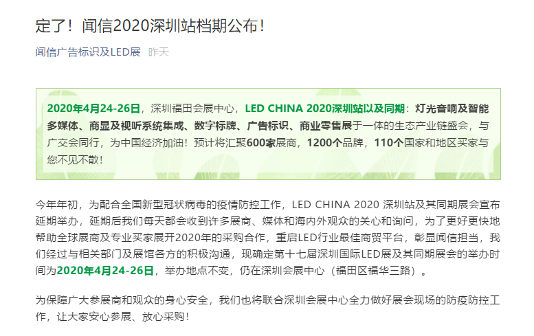 根據(jù)深圳LED展設(shè)計搭建公司領(lǐng)藝展覽了解到,現(xiàn)確定第十七屆深圳國際LED展及其同期展會的舉辦時間為2020年4月24-26日,舉辦地點不變,仍在深圳會展中心(福田區(qū)福華三路)。如需深圳LED展設(shè)計請聯(lián)系領(lǐng)藝展覽,希望我們能在深圳LED展搭建上為您添磚加瓦,祝各位朋友收獲多多,滿載而歸!