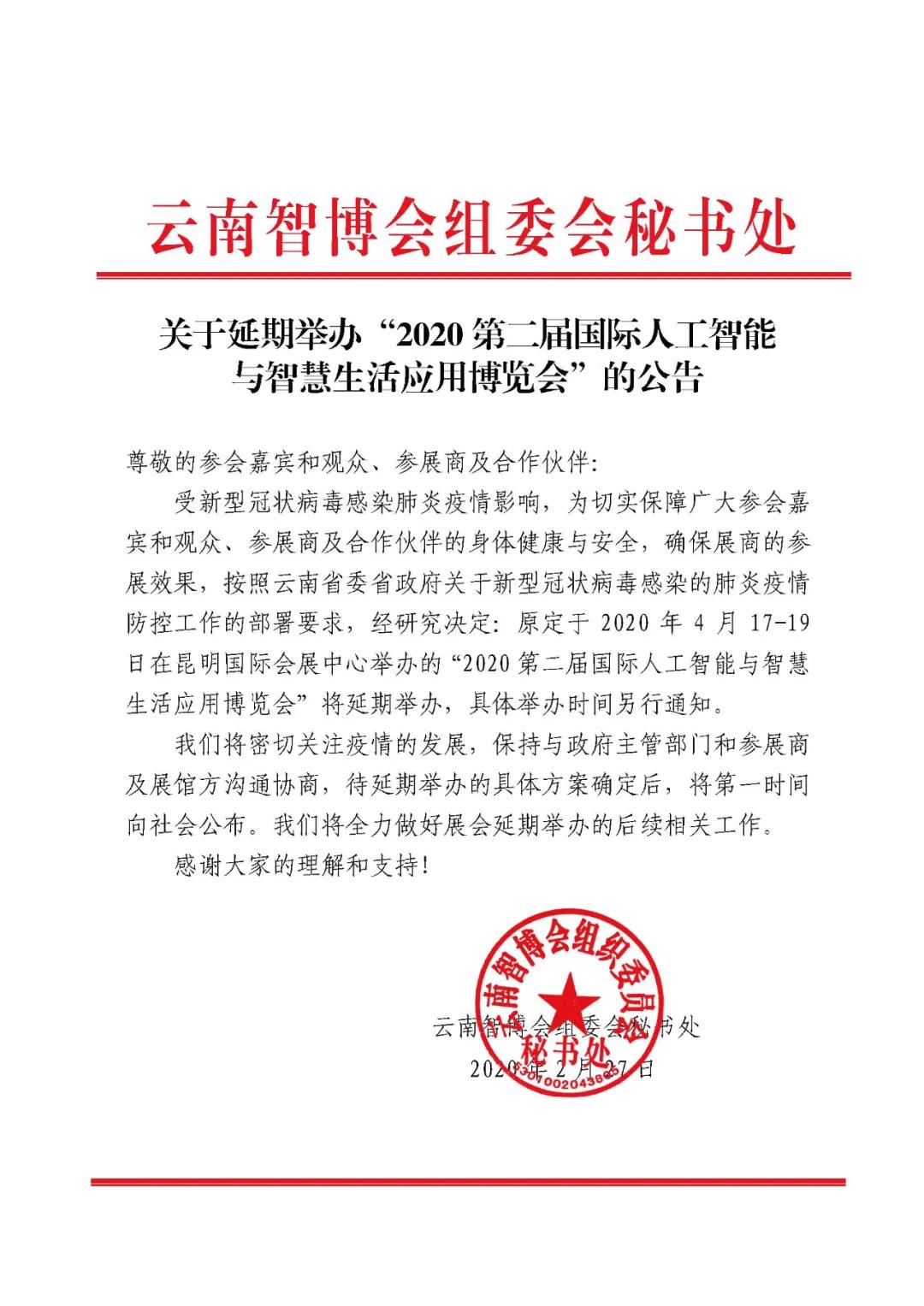 關(guān)于延期舉辦2020中國國際電子商務(wù)博覽會的公告