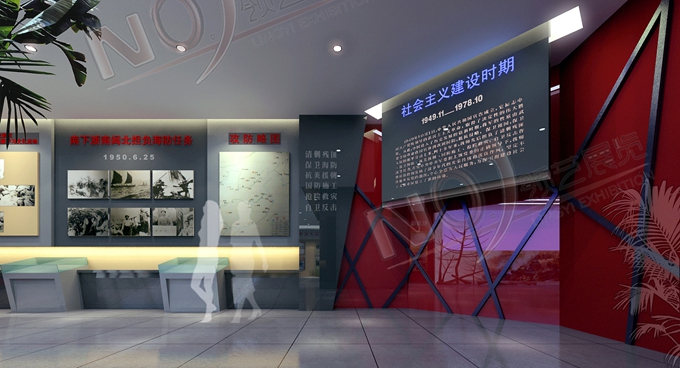 契合的蘭州軍區(qū)史館品牌形象和產(chǎn)品特性,采用矩形結構,再搭配燈具燈光的效果,襯托出展位高端、莊重的氛圍,突出一種嚴肅、肅靜的時尚品味。