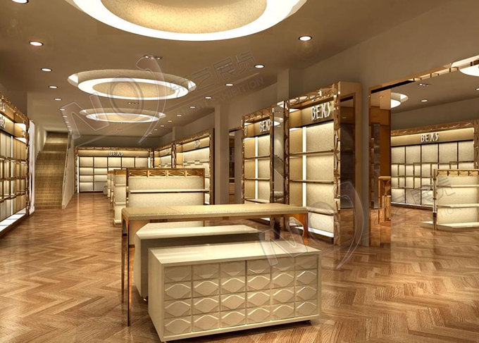 契合的波爾西斯品牌形象和產(chǎn)品特性,采用矩形結(jié)構(gòu),再搭配燈具燈光的效果,襯托出展位高端、時(shí)尚的氛圍,突出一種現(xiàn)代、歐美的時(shí)尚品味。