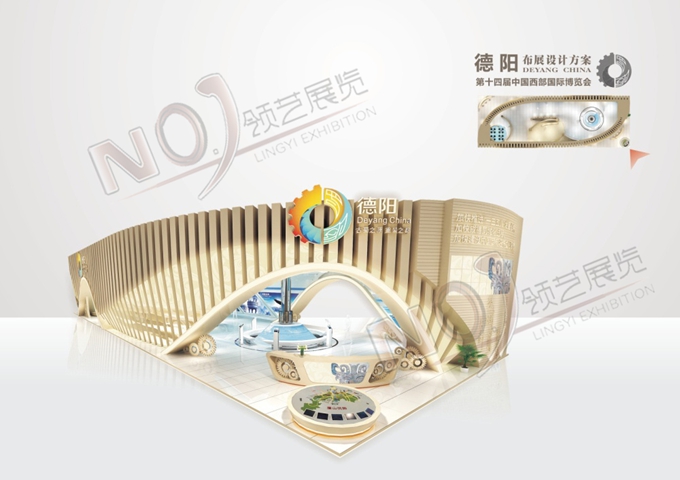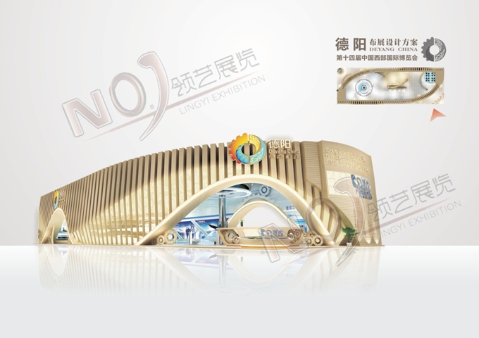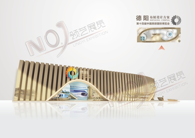 巧妙的運(yùn)用金色、藍(lán)色作為搭配,著重突出德陽(yáng)建設(shè)的展示,使整個(gè)展位主題鮮明又活力四射。